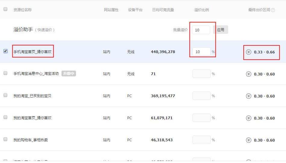 只有出价这一个关键因素,价高者得。钻展跟直通车不一样,直通车是有“质量分”这么一个竞价杠杆,质量分的高低直接影响到计划权重的高低;而钻展完全不一样,钻展没有“质量分”这个中间杠杆。
