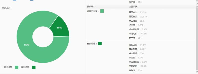 至此,改版后的直通车已经不单单是依靠关键词引流的工具了,直通车流量变得精准化/碎片化/,实际上就是更增加了引流难度,直接表现到具体的就是导致CPC增高。此时无线端引流就尤为重要了。这时候直通车策略其实并没有发生改变,只是侧重点发生了变化,从之前的PC转到了无线端,我们更注重无线端了。你可以发现大多数爆款宝贝都是无线端的流量远远大于PC端。