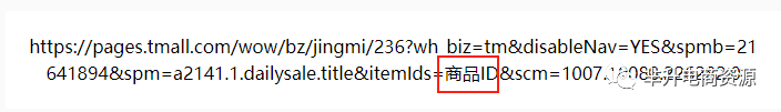 1. https://pages.tmall.com/wow/bz/jingmi/236?wh_biz=tm&disableNav=YES&spmb=21641894&spm=a2141.1.dailysale.title&itemIds=<b>商品ID</b>&scm=1007.10088.226282.0