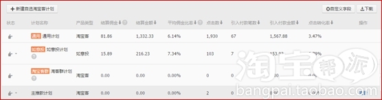 淘客方面,根据掌柜提供的产品利润情况设置各宝贝佣金,以通用计划和如意投计划为主,同时将主推款作为一个计划,用于淘客招募长期维护。通用计划佣金比例相对设置较低,而如意投佣金设置相对高一些,来获取更多的优质淘客关注。