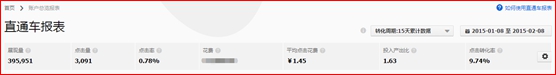 直通车计划日限额150,对比12月和1月数据可以看到展现上升的同时点击率提升,ROI也跟着提升,相对ppc是降低的。
