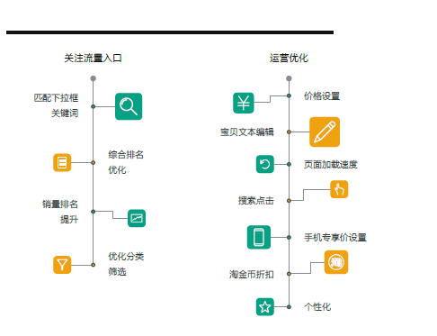 在完成了流量入口的优化后,再来看下基于商品本身和手淘活动的运营优化方案:
