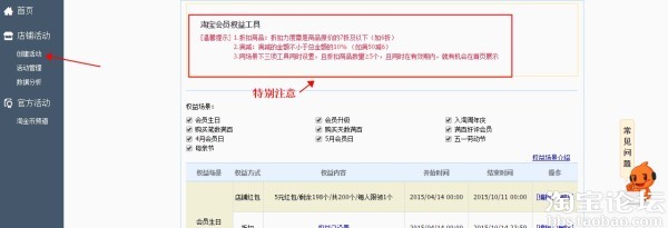 流量还没有过百的同学建议抓紧学习会员权益工具,在这里简单介绍下会员权益工具.会员权益工具就是在淘宝首页最左上角的地方显示,点击就可以进入。买家会在这里看到一些特权, 比如注册周年, 生日,购买笔数满百等,当买家满足条件时,都会在首页左上角提示到买家,可谓巨大的流量。如何设置? 点击卖家中心,店铺营销中心-创建活动-点击会员权益工具创建。