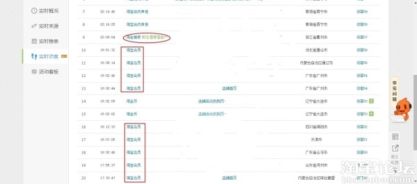 下图为访客详细来源(想看到自己的访客来源可以去生意参谋,实时直播)
