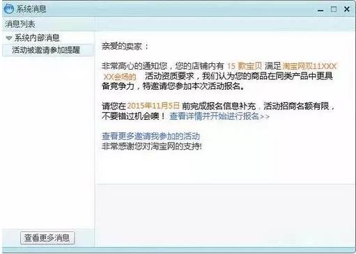 2015年淘宝网双十二卖家**即将拉开帷幕,无论对于卖家还是消费者,这都是一场不可错过的购物盛宴。淘宝网将在PC和无线端齐发力,充分展示出淘宝网商品的质量优异、丰富多样以及独具一格的特点,让消费者体验到极致购物乐趣。 与往年不同,本年度双十二的亮点包括: 1. 全场满就返现金红包,最大力度刺激消费者; 2. 卖家覆盖面更广,所有符合规则的卖家不论大小都有机会进入到主分会场; 3. 外场→分会场,分会场→主会场,全程赛马,强者上。 一、会场布置l 卖家进入淘营销,点击 “邀请我参加的活动>>” 点击菜单栏中的“行业营销活动”,选中“邀请我参加的活动”,即可看到被邀请参加的双十一外场活动; 3.4. 资质要求1.1.1. 卖家资质A. 报名外场的卖家必须为集市卖家; B. 报名外场的卖家必须符合《淘宝网营销活动规则》卖家资质条件; C. 本年度内不存在**jia冒商品违规行为(包含因特殊情形的0分处罚) D. 商家报名分会场需通过《2015淘宝双12卖家大促须知考试》,稍后为您带来>> E. 在此基础上,会对具备一定的店铺经营能力(如销售能力/服务能力)的卖家,发起报名邀请,详细规则如下: 1.1.2. 商品资质A.要求活动商品在活动当天一口价小于或等于30天最低一口价; B. 要求活动商品在活动当天活动价需要小于等于近期30天的拍下价格,部分价格波动较大的类目除外(虚拟、3C、航旅、珠宝除外); C. 非预售商品; 3.5. 卖家必设玩法A. 要求卖家设置店铺红包(双十二大促红包使用的范围是全店商品,从10月29日开始设置,生效时间是12月12日,参加活动的商品与未参加活动的商品,均可使用红包消费) B. 要求卖家必须设置满返现金红包(卖家在报名时候设置,可从10月29日开始设置) 满返现金红包,是淘宝网2015年新推出的一款卖家营销工具,是双12的报名门槛。当消费者在设置满返的店铺中,单笔订单支付金额(不包含运费、保险等)达到卖家设置的满返条件,在付款成功后,立即返给消费者一定的现金红包,返的现金红包是商家在双12促销价的基础上额外的让利,消费者获得现金红包后,可以在淘宝网(除虚拟等类目)普通实物订单中抵扣使用。卖家设置满返工具的时间:2015年10月29日00:00:00-2015年12月11日23:59:59,满返生效时间(逾期作废):2015年12月12日00:00:00-2015年12月12日 23:59:59。 4. 审核规则根据各自的特性,每个分会场都有不同的审核规则,详情请查看不同分会场宣导详情页。 A.预售会场审核方式为:小二人工审核 B. 分会场审核方式为:系统审核+小二人工审核 C. 外场审核方式为:系统审核 5. 主分会场和外场包邮及运费规则A.“活动商品”包邮指:全国包邮,大陆偏远地区(内蒙古、甘肃、青海、宁夏、新疆、西藏)、港澳台及海外地区除外; B. “活动商品”大件类商品包物流,大陆偏远地区(内蒙古、甘肃、青海、宁夏、新疆、西藏)、港澳台及海外地区除外; C. “活动商品”大件类包括: 母婴大件类目(童床/餐椅/儿童安全座椅/童车[推车、学步车、自行车、三轮车、电动车、扭扭车] 、大型组合式游乐设备、家具大件类商品(住宅家具、鱼缸/水族箱、商业办公/家具类目:高于0.6立方米或大于20公斤)、建材大件类商品(卫浴陶瓷[浴室柜、坐便器、淋浴房、台盆]、地板、瓷砖、油漆、涂料、门、电线、基础建材大件商品,高于0.6立方米或大于20公斤灯具和安防)、汽车配件部分类目(指轮胎、轮毂类;另外整车自提)、运动户外大件类商品(跑步机/大型健身器械、踏步机/中小型健身器材、自行车整车、电动车/电动车配件)、大家电、农资、钢琴/数码钢琴/古筝 。 D. “活动商品”包物流:指包含商家发货至消费者确认的收货地所在的地级市物流提货点的费用(地级市到买家收货当地的物流点费用需商家与买家协商而定)。收货人负责将商品从物流提货点提至收货地址 。 已审核通过的商品运费模板将在大促当天被系统自动替换,未审核通过的商品将沿用原有运费模板。 6. 活动清退说明与解决商家成功报名分会场,并被审核通过后,仍有可能被系统清退或取消活动资格。 为了避免商家产生不必要的损失,现列举可能产生清退的原因,请各位商家务必注意避免下述情况发生: A. 商家在报名活动后出现不符合大促资质的违规行为,一经核实,做违规商品活动页面下架、违规店铺活动会场清退的实时处理 B. 商家在报名活动后,以低于双十二促销价的价格提前售卖宝贝 C. 商家在报名活动后,取消已经设置的红包 D. 商家在报名活动后,取消已经设置的店铺满返 E. 商家在报名活动后,因店铺自身原因,主营类目发生变更 F. 商家主动要求小二强制取消活动资格 H.其他报名后不再符合活动资格要求的一切情况 l 如何确定“活动商品”被系统清退: A.收到千牛或旺旺清退通知(如下图)则代表当前报名的商品已被系统自动清退,系统会告知清退原因