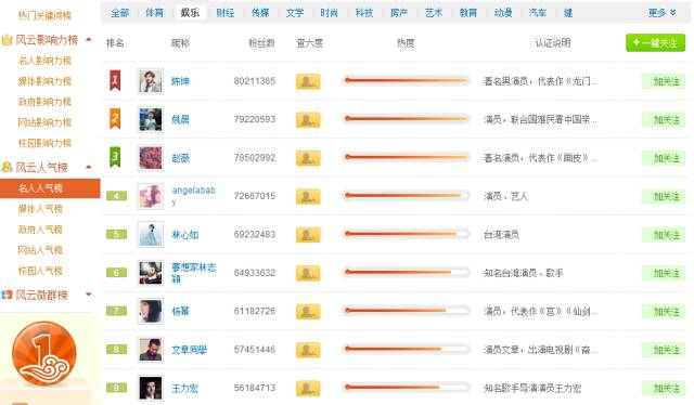 用主号批量关注娱乐圈比较知名且较活跃的明星,可参照微博风云榜。粉丝数当然是越高越好,储备足够多的鱼塘,当明星更新微博,我们就第一时间去抢占评论。 步骤三、释放鱼饵