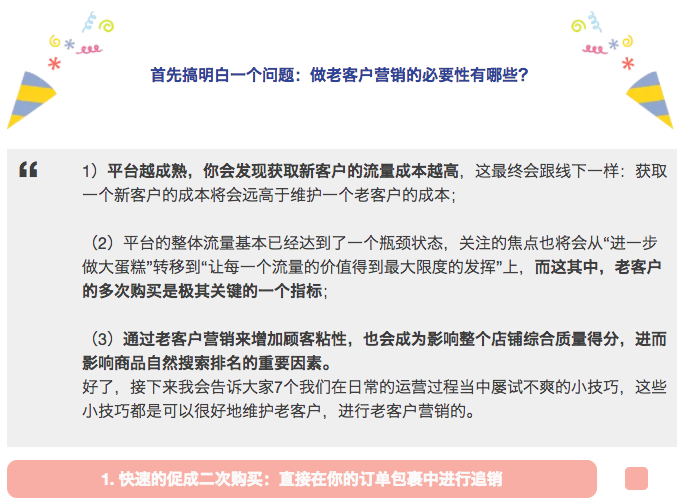 这个其实频率不用很高,但是建立的基础是:你的店铺值得重复消费。比如说服饰类目、鞋子、包包、母婴用品等等。这个一般的操作方法是这样的: