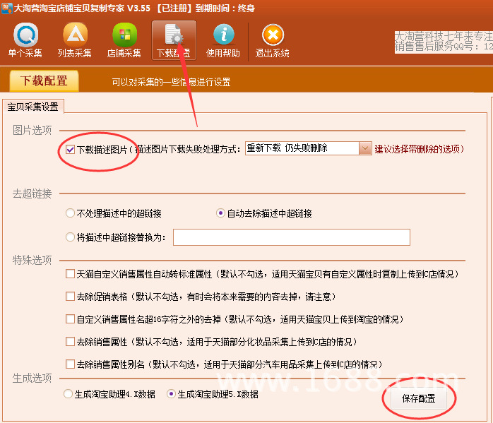 在淘宝开店,很多店主常常都会有这样的困扰,供销商给的数据包又只有一个csv和同名主图文件夹,描述图片还在别人的图片空间中,有数据包也不能上传到自己的淘宝店铺上。那么,我们该如何下载宝贝描述图片呢? 一、没有数据包的情况下。 没有数据包的情况下,打开大淘营复制工具复制宝贝描述图片。然后运行工具,打开工具的下载配置,勾选一下“下载描述图片”然后点保存配置。如图:
