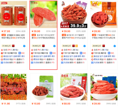 如图,我去淘宝搜索了一下电磁炉,然后看到一堆眼花缭乱的主图。那么问题就来了,这么多的店铺,买家要怎么来进行选择呢?显然,如上图所示,白底比较干净的主图销量是最好的,要么就是价格便宜的销量也是好的。然而,这个价格低的宝贝销量还是比不上这款宝贝的销量。为什么这款宝贝会这么突出呢?主要是其他的主图无论是效果上还是利益点,都并不差于这张图。但是,它们都是千篇一律,而在这里,越是干净的背景,越是有醒目突出的效果!而相反,在一堆没有什么效果简单的主图中,一张富有设计感的主图,往往就是去的效果的感觉因素。 主图的差异化主要包含这样几个要点:构图、场景、展示的细节和人群的定位。细节的差异主要是指商家所设计产品主图时需要注意每个产品的细节有没很好的展现出来,是否到位;构图和场景的差异则是关乎于人群的定位的选择。比如一个卖吸层器的,定位的职业多是女性和家庭妇女,那么场景可以选择家居室内的场景等等。 一、主图的创意性 一张主图正常的来讲,只要吸引到客户的眼球的那就是突出。而一张突出的主图需要的创意性,除了和别的商家有差异,自己的创意也是很重要的,不仅仅要表现的有差异,而且还需要图片的效果直击消费者的心理。比如一家卖健康食品的,那走的就是情怀,那么主图风格文案可以去往这个方向来去发展。 那接下来我再举个例子:去搜索一下枸杞这个产品,基本都是右下角这样的风格的主图,那么买家都是会走马观花的去浏览网页。而这个时候,是不是如图下的红色框的主图比较有创意一点呢?先不说是否有美感,起码可以在第一时间抓住买家的眼球,从而大家可以看待,这个店铺的销量也是很不错的。