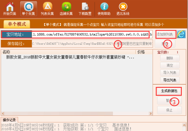 1、首先用大淘营阿里巴巴宝贝复制专家,在下载配置里面勾选“生成淘宝助理5.X数据”,复制宝贝链接,然后粘贴在宝贝地址,添加到列表,然后点生成数据包