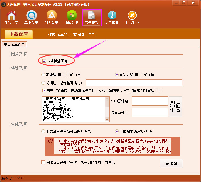 我们要检查 一下软件的下载配置,是否已经勾选了下载描述图片。