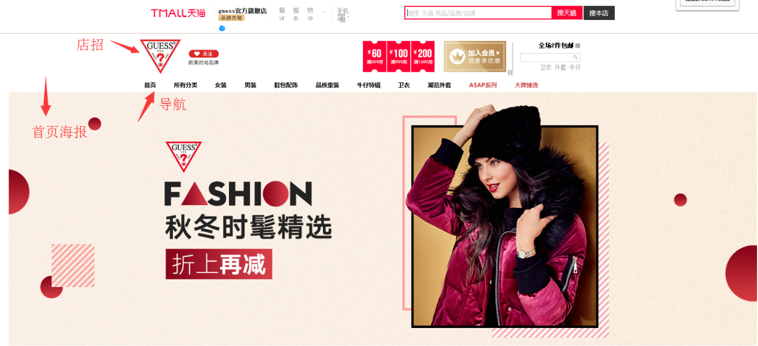 好的店招,简洁明了,品牌LOGO设计得当,排版舒服,没有乱七八糟的文案,让客人印象深刻。好的导航,分类准确,让客人想找心仪宝贝时有迹可循,合适的陈列会勾起客人驻足观看的欲望。