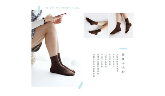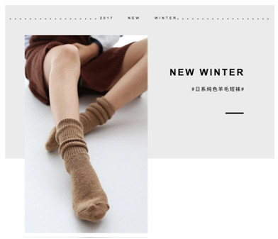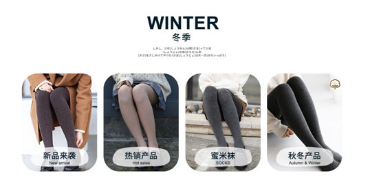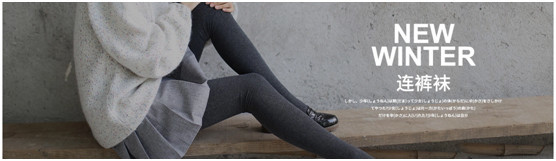 另外,短袜长袜之间也没有区分开,直接采用类似的排版一直排下来,没有清晰的界限! 下面是我接手店铺之后对首页进行的一些改进,首先是海报,定下了一个整体颜色的主基调。
