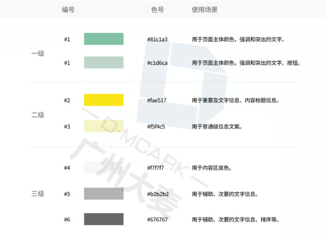 (2)主色调使用标准规范: 蝶爱舒品牌名,第一感觉偏向感性的清新风,有点小朦胧,可以是恋爱的甜蜜, 也可以是闺蜜之间的美好情愫! 结合品牌名和品牌定位,抓住日系和清新这两个关键词,能表达它们特性的颜色。 我们把店铺视觉色调划分三个级别使用: 一级,用于页面主体颜色,强调和突出的文字、按钮。 二级,用于重要信息及文字信息、内容标题信息/普通级信息文案。 三级,用于内容区底色/辅助、次要的文字信息、排序等。