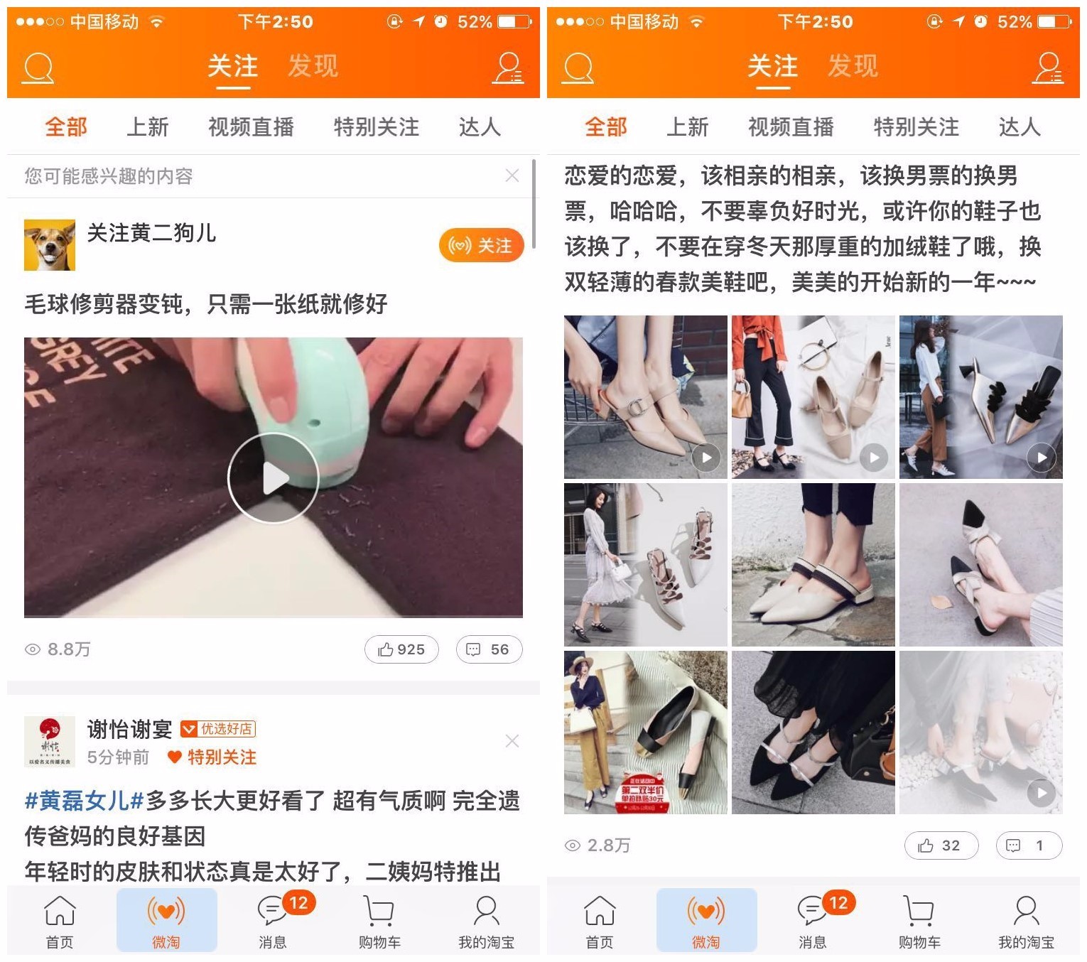 微淘的内容形式主要有以下及各类别:长文章、九宫格、短视屏、买家秀,那么如何利用微淘来快速的吸引粉丝引爆流量,有利用什么方法可以提高客户的转化,增加销量呢?下面我来给大家详细的讲解一下:
