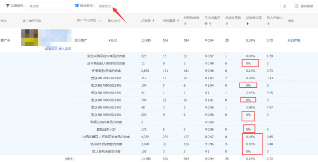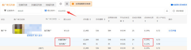 可以看到,定向的转化率更低,所以我们可以把定向停掉。一般情况下,我们建议关键词和定向分开计划进行推广。
