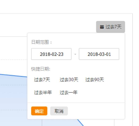如果我们想要查看更多时间的数据,就需要点击右侧过去七天的这个按钮,会出现下面这个界面,最长可以针对这个词过去一年的表现都能够看到.