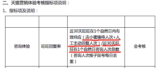 上表来自《天猫商家营销体验考核指标解读》的截图,里面的回复率的计算公式明确将店小蜜接待作为接待计算分子。