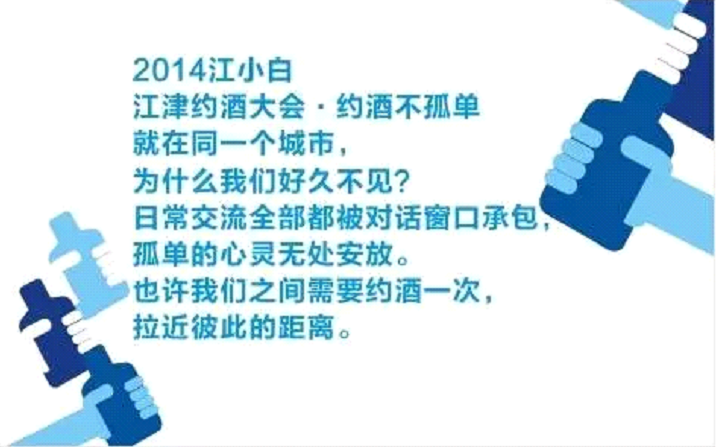 让约酒大会,从一个城市逐渐的扩散到了全国,品牌热点不断升温,也让粉丝觉得江小白是个有温度的品牌,从而反补产品销售。