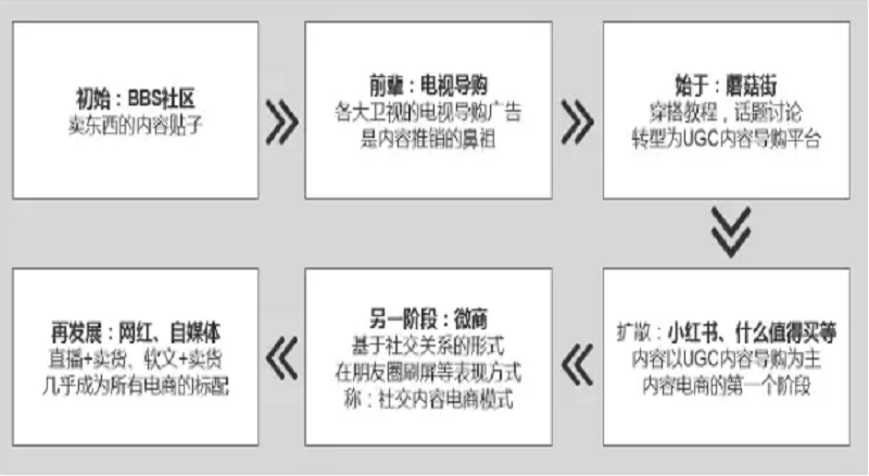 内容电商这个概念的发展也随着时代变化不同的表现形式,我们用图片简单的概括下内容电商的发展。