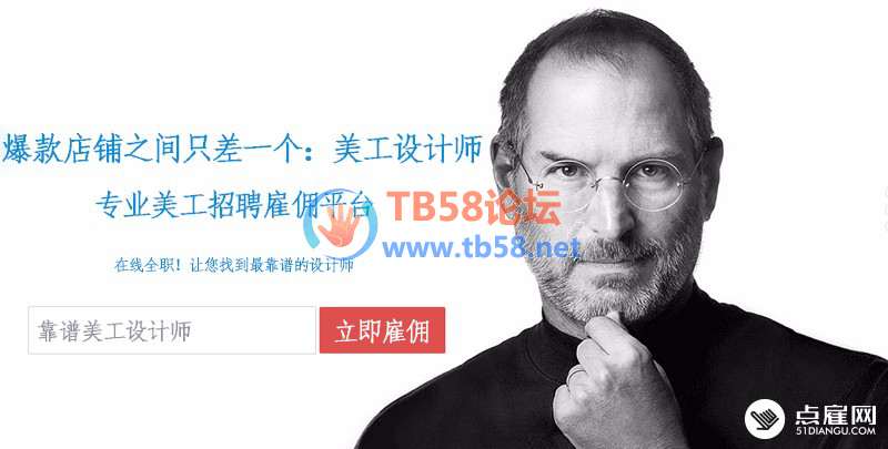 找美工www.51diangu.com,点雇网一家在线全职**美工招聘雇佣的网站。