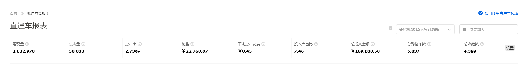 第二步:以7天为单位分析数据表现不错(点击率、投产、收藏加购)其他数据差的款暂停推广,对于挑选出来的款按库存情况了解短期还是长期投放,之后对于综合不错的款进行长期稳定投放。