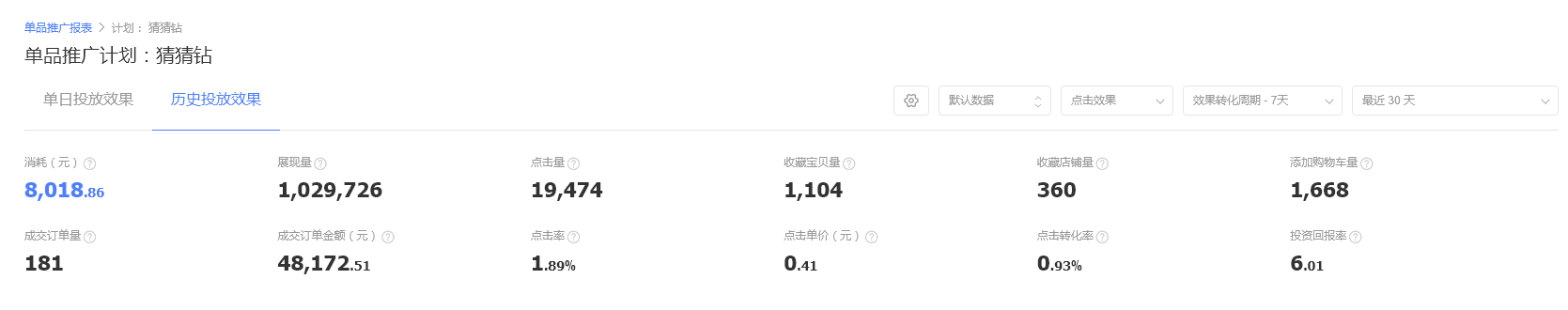 上次有具体讲直通车定向和钻展推广的小技巧,这次就不具体细说了,这次就说一下钻展单品推广的效果与自己的一些小心得。