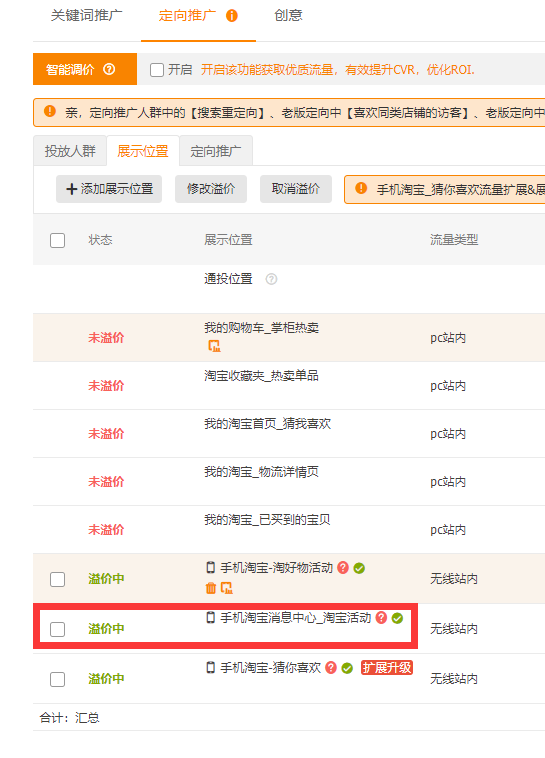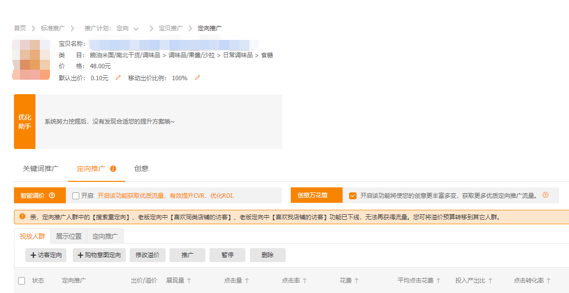 上图 是我一个徒弟的店铺,通过定向投放后,直通车带动自然搜索,现在他已经在逐步下调他的直通车费用,而自然搜索权重,每天上升,这样就可以拉动自然搜索的免费流量了!那么既然直通车定向投放是一个很有用处的直通车技巧,那么我们操作,效果才会更明显呢? 定向计划初期设定: 1)、加8~10个精准的关键词(小类目词少3~5个),这些关键词是前期在养车的时候,挑选处理测试合格,点击率高,收藏加购比例合格,相关性满格的关键词。这些关键词最好是精准长尾词,展现量要足够,精准是为了锁定人群,定向前期就是要把人群拉起来 锁定,这样你的人群打标成功后,在利用系统匹配来逐步的优化精准流量! 2)、定向直通车,1-3天就是烧人群,其他的都不用管,基本以养关键词权重为主!当权重拉高了,人群锁定了,删除所有关键词,就可以带动自然搜索了! 直通车定向推广位置,最有效果的,就是手淘首页的猜你喜欢,经过淘宝系统再一次升级,这个功能更加完善,所以利用定向,引导手淘首页权重,引爆手淘搜索的原理,就是我们开直通车定向的最终目的,定向是宝贝找人!直通车人群,通过定向推广定位精准人群,给卖家宝贝贴上精准标签,然后在通过这些精准标签,把宝贝放在精准的人群池中,让这些精准的顾客来选择宝贝,从而带来更精准的有效点击,收藏,加购和转化。 综上所述,定向其实就是一个利用流量的自我刷新,逐步筛选人群的过程,通过前期精准关键词烧人群,在关键词删除后,没有关键词的干预,人群也确定了,那么系统会一遍一遍的刷新,来一次一次的为你自动匹配适合你店铺,你商品的人群,所以前期关键词烧人群,这个是成功的核心,也就是说,方向对了,走的时间越长效果越好,如果方向都错了,那就越走越远,所以重点在锁定人群上!