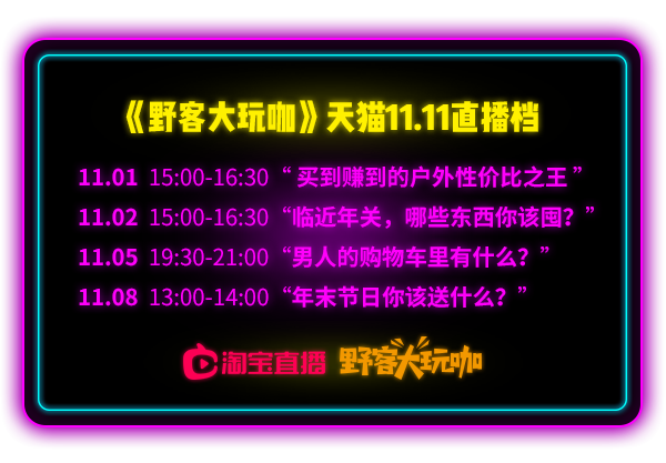双十一看什么?野客大玩咖淘宝直播,11月2日15:00-16:30 双十一预售主题“临近年关,哪些东西你该囤?”