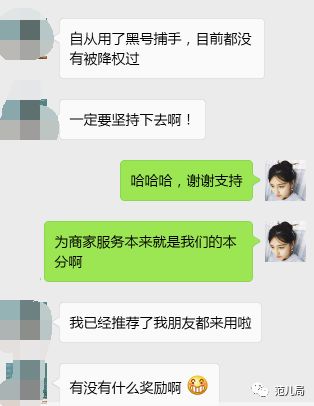正因为商家自身受益了,他们才愿意把“黑号捕手”推荐出去,让更多的人知道,让更多的朋友受益。