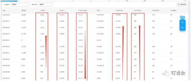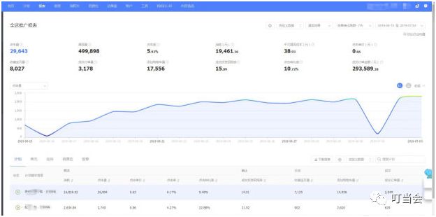 E.定向计划:关键词计划养好后,定向计划同时操作,让人群流量快速入池,带动首页流量的提升,其次可以用钻展圈定人群,深度挖掘目标客户,提升转化,比如女装钻展数据展示,点击单价0.66,投资回报率15.99。叮当会微信:2103288674