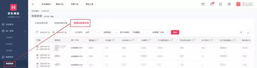 04海投计划-数据报表-效果报表-搜索词效果总揽