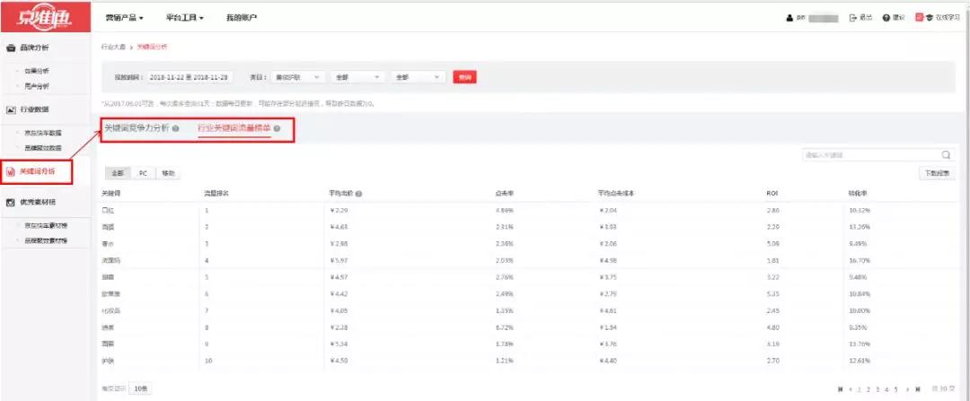 05京东商智-行业关键词分析-热门关键词、关键词查询