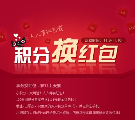 在天猫中,积分是跟消费者的购物金额有直接的关系,在进行消费的时候可以得到同等金额的积分,但是在进行积分兑换的时候是按照100积分兑换一元钱这样的规定来执行的。而且积分的有效期是一年,也就是说大部分的人会在年底的时候把自己积分用完。