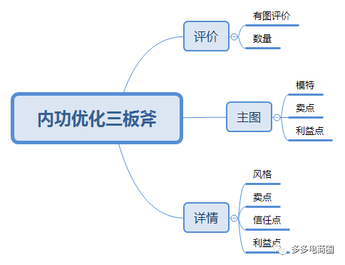 好了,今天的分享就到这里。内功优化三板斧,虽然只给大家重点分享了评价,主图和详情优化的注意点,我也已经总结到了思维导图上(看前面的图片),因为大家所做的类目都不同,我前面的文章也详细地分享过关于主图和详情的问题,有兴趣的可以去扒一下。这篇文章就不给大家细说了。