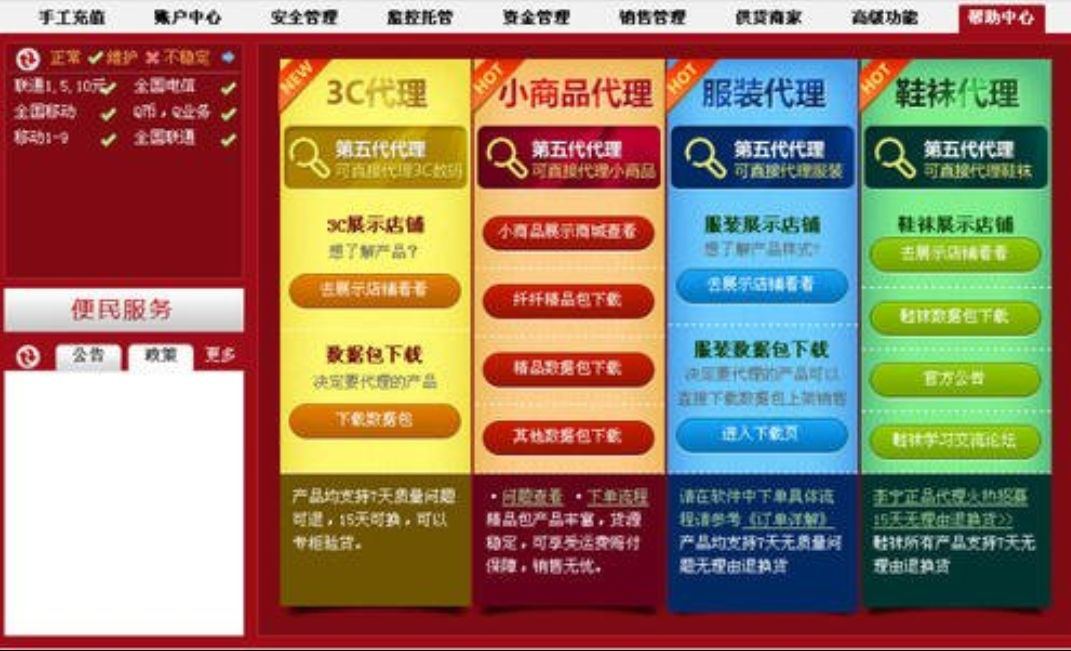 在这样的网络环境下,网购的形式也是多种多样的,除了淘宝网上我们所熟知的普通店铺的基本商业模式外,还有各种各样的销售方式,其中就有代销平台。