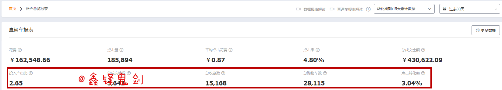 想着做好这部分,就需要你认真的做好店铺的推广引流操作。尤其是现在用的比较多直通车,超级推荐,钻展引流。当然还有其他推广操作,只是这三个更经济适用。 图3(源于鬼剑实操直通车后台截图)