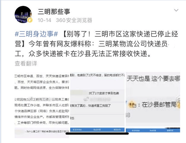 最后想问问大家,最近有看到快递停工的相关消息吗