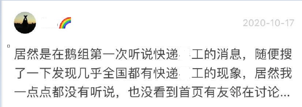 出现这样的事情,网上好像并没有多少人在讨论,就好像这件事从来没有发生过一样,只能说都不容易,尤其是今年,哪一行都不好看。感叹完快递员的艰辛,我们也得回归现实,为生计而奔波。
