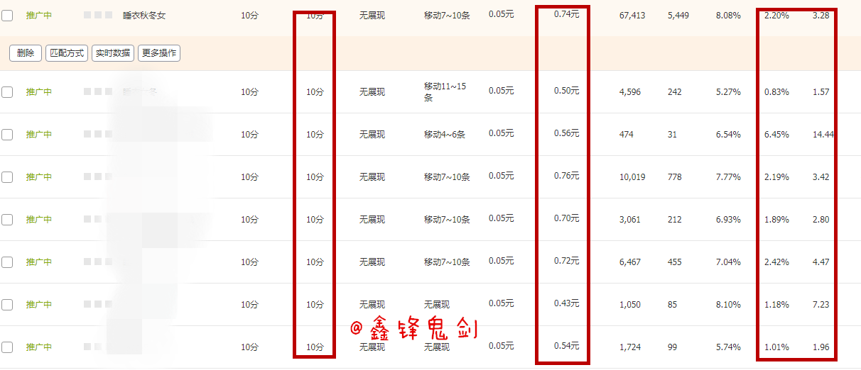 所以在优化时,点击要至少达到行业均值以上,低于均值之下的,给3天数据反馈期,调整价格或者匹配方式,看数据波动。