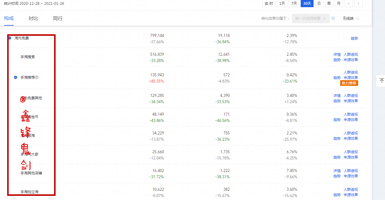 对于搜索这块,现在的规则下,要从2方面去入手,关键词以及人群。因为搜索是通过词在查找,通过人群再匹配流量。所以依旧是不能忽视的操作重点。