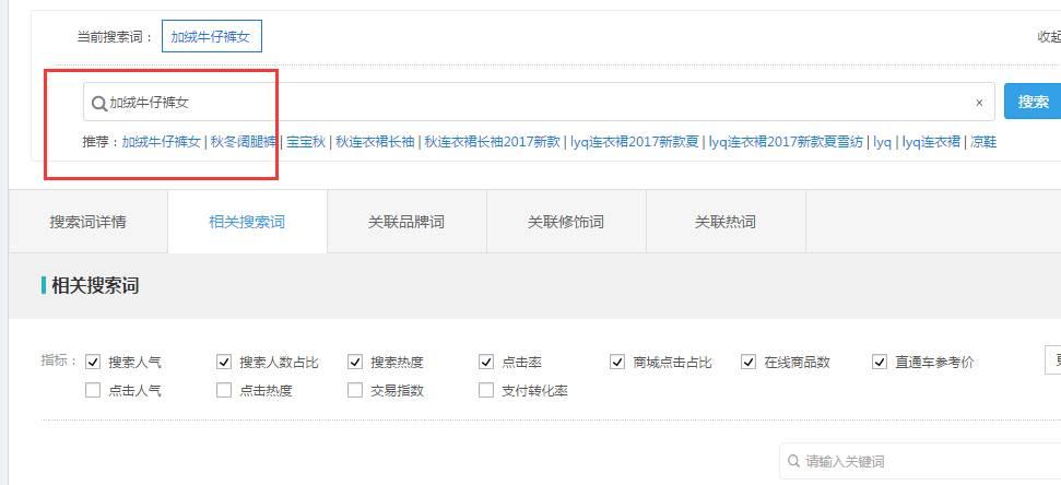 比如说,销售的是连裤袜,那么关键词可以是连裤袜、打底裤、九分裤等。然后我们把这三个词都输出淘宝指数搜索框,这样我们看到打底裤的搜索指数最高,因此我们在发布宝贝时,可以把这个热门关键词写进去,提高搜索的几率。